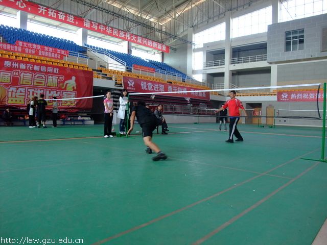2010年10月22日中午12点,由贵州大学法学院研究生会举办的法学院研究生“迎新杯”羽毛球赛决赛在北区体育馆隆重进行。