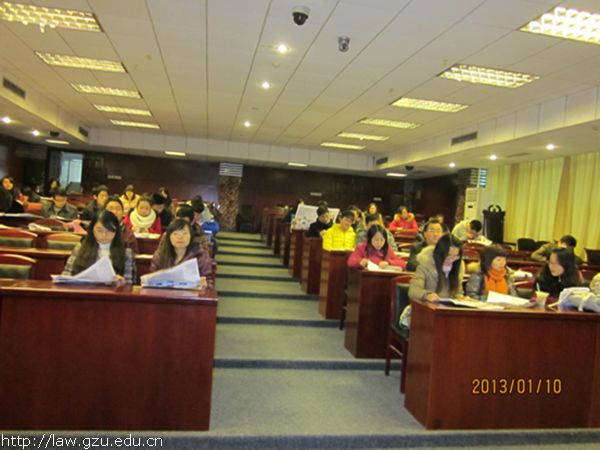 2013年1月10上午11:00,法学院在模拟法庭召开学期研究生教学及管理听取同学意见暨假期工作安排会,对本学期的研究生教学及管理工作进行总结并听取同学意见和建议,也对即将到来的假期的研究生工作作出安排部署。法学院研究生科科长彭娜老师,研究生科副科长李丽老师以及2012级学术型研究生参加了此次会议,研究生科科长彭娜老师主持会议。