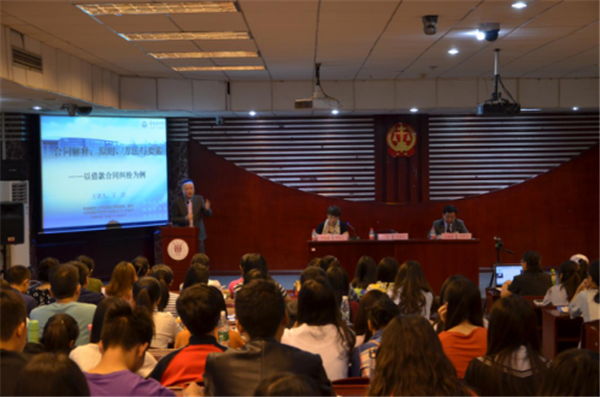 2016年9月27日上午9:30,2016中国仲裁周活动在模拟法庭如期举行。中国国际经济贸易仲裁委员会仲裁员、西南政法大学王洪教授莅临我校,为我校法学院的同学们做了一次主题为“仲裁中的合同解释:原则方法与要素”的讲座。此次活动由中国国际经济贸易仲裁委员会西南分会秘书长王瑞琛主持,由中国国际经济贸易仲裁委员会仲裁员、贵州大学法学院院长冷传莉教授作为此次讲座的评论人。