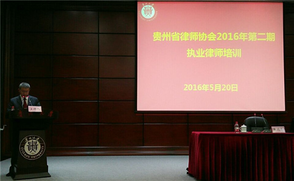 2016年5月22日上午,2016年贵阳市执业律师第二期培训在贵州大学北校区行政楼学术报告厅举行。贵州省律师协会副会长、贵阳市律师协会会长屈超勇、贵州大学法学院党委书记胡小兵、贵州大学法学院院长冷传莉、贵州大学法学院副院长魏红、副院长宁立标出席了培训开班仪式。开班仪式由贵阳市律师协会副会长兼秘书长宋迅主持。
