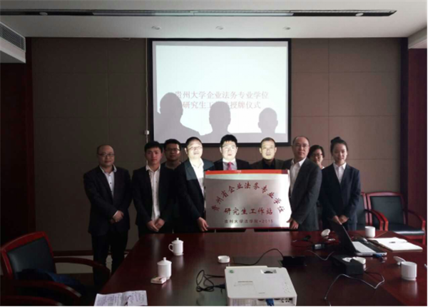 4月26日上午,由贵州大学法学院与盘江集团法律事务部联合建设的贵州省企业法务专业学位研究生工作站授牌仪式在贵州省盘江集团控股股份有限公司十楼会议室举行。贵州大学法学院副院长宁立标教授,法律硕士教育中心副主任陈松老师以及盘江集团总法律顾问肖祥云先生及其工作团队等出席了授牌仪式。