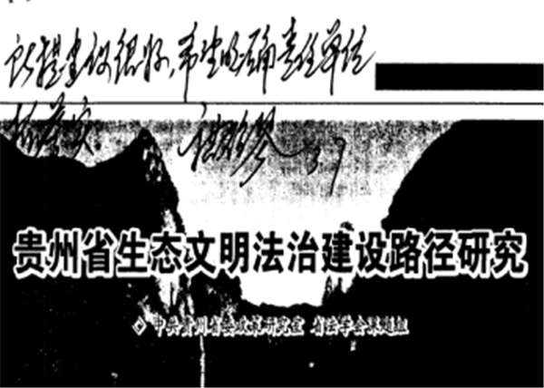 《贵州省生态文明法治建设路径研究》于2015年5月份启动,由贵州省法学会主持,并得到贵州省委政策研究室支持。本课题参与者均来自贵州省内各大高校如贵州大学、贵州财经大学、贵阳学院从事环境法、行政法等专业教学科研一线教师组成,李一丁老师带领三位研究生自始至终参与本课题前期资料搜集、调研与并与其他高校学者合作完成该课题初稿和二稿。