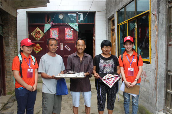 在了解了实践服务队调查目的后,村民们热情地接受了调查,还主动带领同学们参观了他们的养殖场,向大家展示他们制作的富有民族特色的银饰等手工艺品。下午3:00,实践服务队在没有村领导带领的情况下,去村民家中走访,一方面为了更好的收集和统计调查数据;另一方面也是为了提高自己与村民的沟通能力和实践服务能力。通过走访调查,同学们对走访对象有了基本了解,成功的收集到了一手调查资料,后期将对有关调查数据进行数理统计,得出本次调查的初步结果。