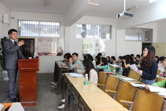 正式课程开始之前,郑世红律师回忆了他在我校就学时的场景,感谢学校的悉心培养并表示乐意以这样的形式回报母校。