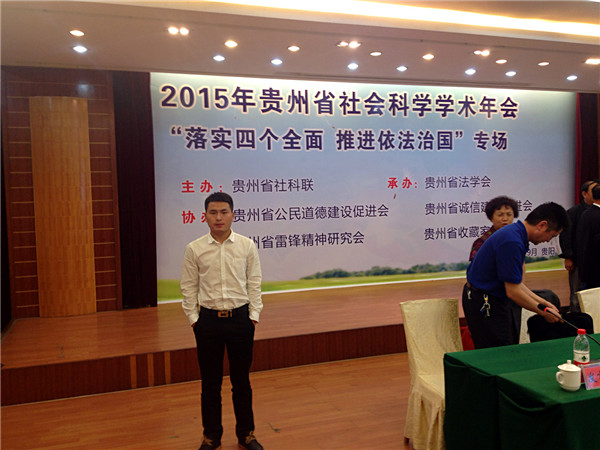 在此次学术年会中,我院研究生杨柯,与来自省社科联、贵州省法学会、贵州省委党校、贵州省委宣传部、省社科院,贵州省高级人民法院、贵阳市检察院、贵州警官职业学院,各大律所等多个单位和部门的与会人员共聚一堂,围绕“落实四个全面,推进依法治国“问题展开了深入的探讨,并对十几篇交流的文章进行了交流发言。在自由发言环节,我院研究生新颖的观点和出色的表现,得到了大家的肯定。