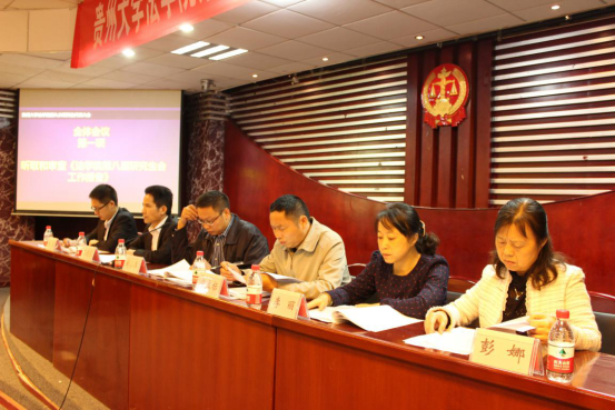 2015年10月14日9点,贵州大学法学院第九次研究生代表大会在法学院模拟法庭隆重召开。法学院党委书记胡小兵老师、党委副书记石明昌老师、副院长宁立标教授、研究生党总支书记李丽老师、研究生科彭娜老师、研究生辅导员刘杰老师以及法学院12个代表团共85名代表参加了此次会议。