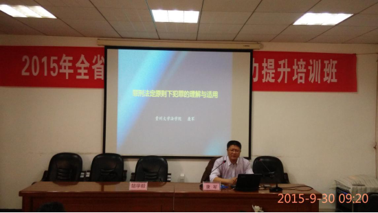 9月30日,我院刑法教研室康军博士应邀赴贵州省农委进行学术讲座,讲座题目为《罪刑法定下犯罪的理解与适用》。此次讲座,是省农委对于全省农业行政执法培训的重要内容,来自全省9个地州市县的农业行政执法人员参加了此次讲座。在为时两个小时的讲座后,康军博士充分与各位农业执法干部进行交流,受到与会人员的欢迎和好评,希望加强进一步的交流和合作。此次学术活动,为强化我院与各实践部门的理论和实务交流打下良好基础,增强了我院理论服务于实践的契机和服务全省的定位。