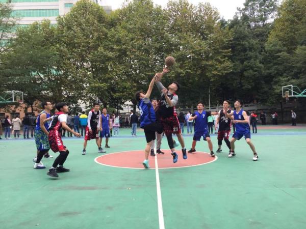 2017年10月21日12时30分,由法学院研究生会主办的第五届研究生“迎新杯”篮球小组赛在北区博学楼体育场火热进行。