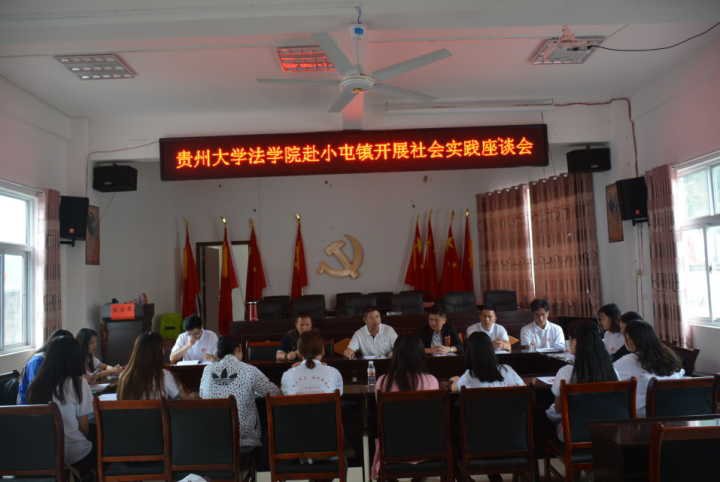 2018年8月6日下午,实践队在宁立标副院长和穆昌亮教授及辅导员王冰老师的带领下奔赴贞丰县。8月7日上午10时,法学院法治宣传实践队在法学院选派贞丰县小屯镇扶贫挂职杨开宇老师和辅导员王冰老师的带领下,赴小屯镇政府与小屯镇镇党委书记刘瑜、镇长皮俊等主要政府领导举行了座谈会。首先,小屯镇党委书记刘瑜对老师和同学们的到来表示热烈的欢迎,并向大家详细地介绍了小屯镇的基本情况。然后,小屯镇镇长皮俊给法学院暑期实践队提出了指导性的建议,希望同学们在实践活动中充分运用专业知识,通过实地考察,为乡村振兴提出个人建议。接着,王冰老师转达了贵州大学法学院党政领导对小屯镇政府在此次活动中所给予的大力支持表示感谢,并表示在此次暑期社会实践中,实践队一定会认真负责,努力运用专业知识做好法治宣传活动。