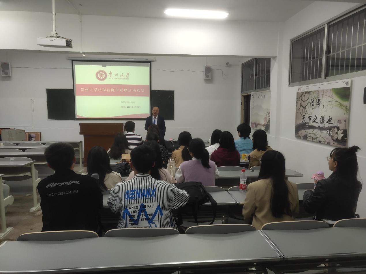 4月29日,由贵州大学法学院法律硕士中心主办,法律硕士联合会承办的“庭审现场”活动在花溪区人民法院如期举行。我校法学院19级以及20级法律硕士共23人在法律硕士校外导师何兵律师的带领下参与了此次活动。