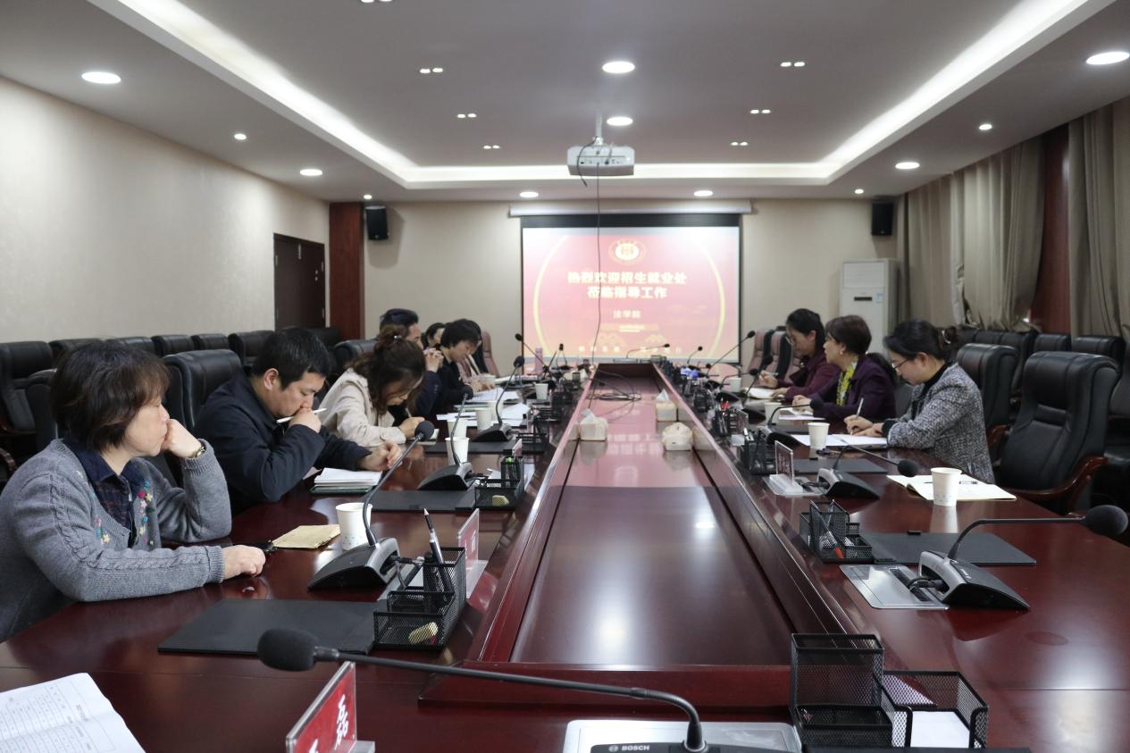 4月6日下午,学校招生就业处处长余颖、副处长杨敏等一行人莅临我院开展招生和就业创业工作调研指导工作,会议在法学院217召开。我院党委书记石明昌、副书记岳莹出席,各教研室负责人、科室负责人、毕业班班主任、教师代表、辅导员等参加会议。