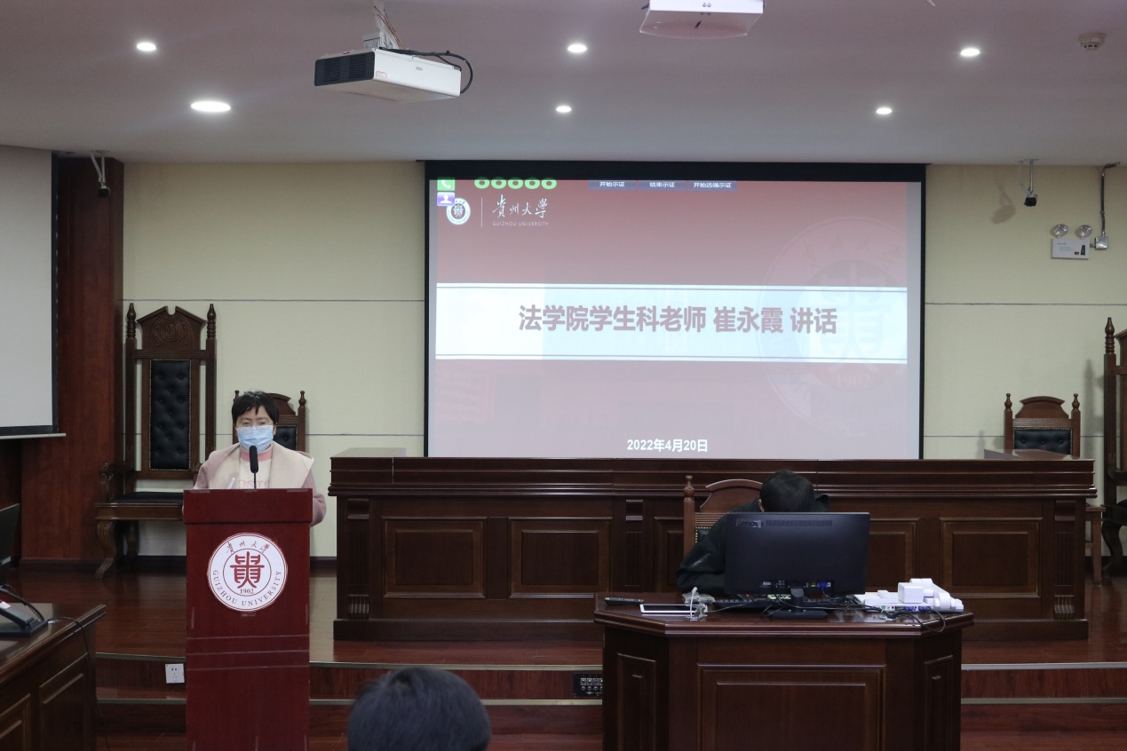 之后,法学院学生科老师崔永霞就毕业生的返校申请、请销假以及毕业去向问题做了进一步的说明和强调。