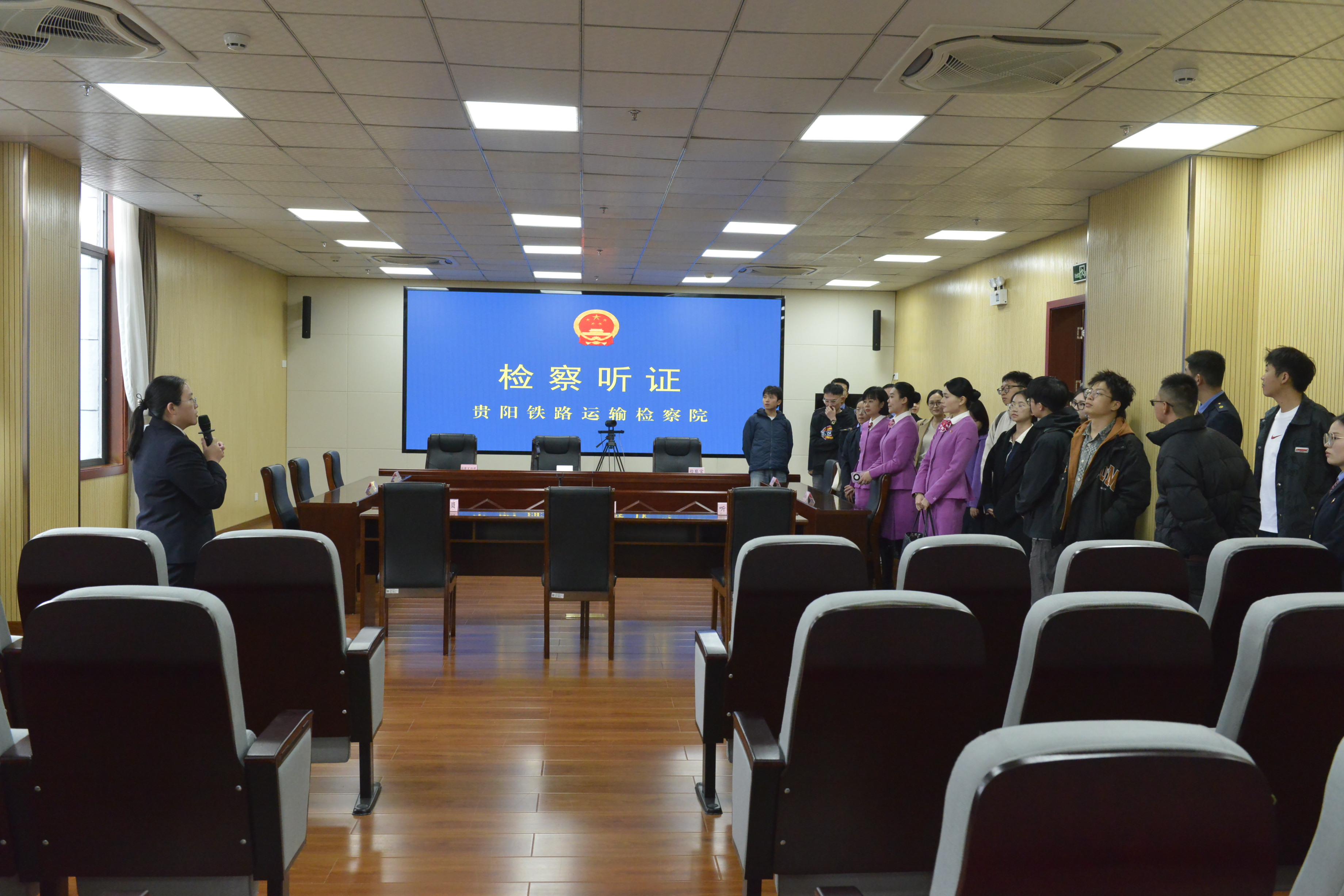 在“检察开放日”环节,同学们实地参观了贵州省第一地区人民检察院办案区、听证区、图书室快检实验室等场地。工作人员详细介绍了检察院部门设置、职责分配和办案流程,展现了检察机关司法为民的窗口形象,也使同学们对从书本中了解的检察工作有了具象化的认识。