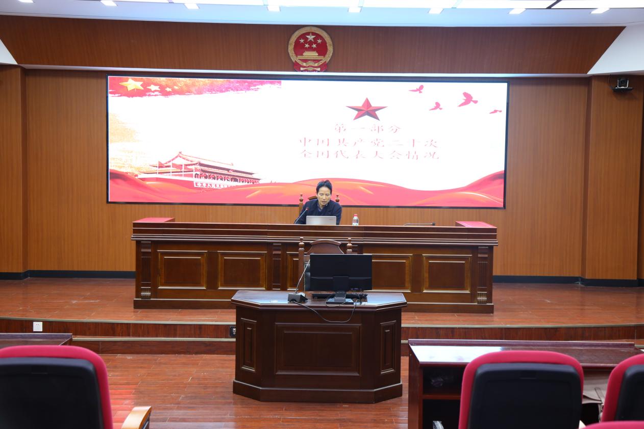 2025年10月24日,法学院党委书记石明昌在贵州大学东校区模拟法庭为法学院第四十三期入党积极分子讲授了题为“深入学习贯彻中国共产党第二十次全国代表大会精神”的党课。贵州大学法学院在模拟法庭组织开展了以“深入学习贯彻中国共产党第二十次全国代表大会精神”为主题的党员培训活动,本次党课由法学院党委书记石明昌主持。