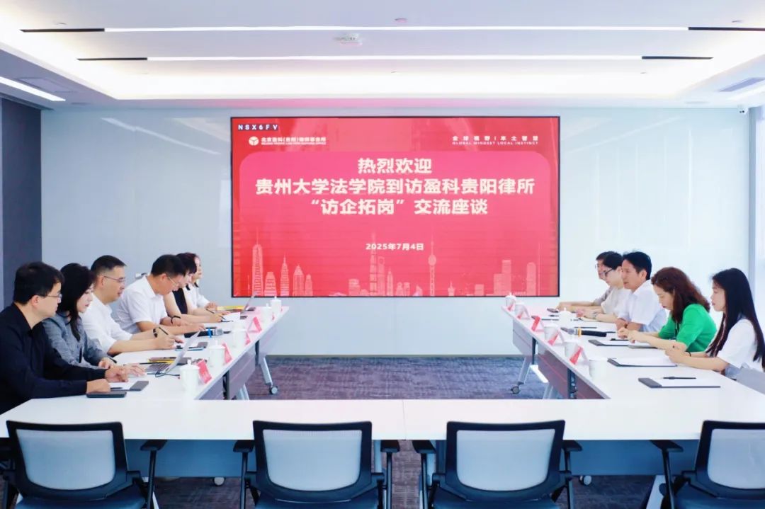 在盈科贵阳律所的座谈会上,法学院党委书记石明昌指出,当前法学就业市场面临“基数大、竞争激烈”的挑战,法学院正积极推进“访企拓岗”专项行动,以精准对接用人单位需求。他强调,贵州大学法学院近年发展迅速,在全国高校中排名逐年上升,培养的毕业生专业能力强、综合素质高,期待通过校企联动,为学生拓展更多优质就业渠道。我院毕业校友周颖蓉、王宇主任以及罗槟兰副主任,结合法律行业现状,对法学教育、法学就业、职业选择等提出看法和建议,并提出希望师弟师妹能加强对法学行业的认识,多领域多岗位尝试,适度打破 “体制内优先” 的就业思维定式,主动走进律所、企业法务等多元场景,在实践中深化对行业的认知,以更开放的姿态拥抱法律职业的无限可能。