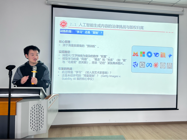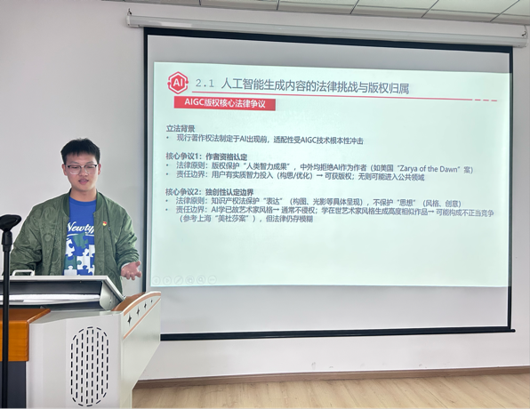 专题研讨环节,法学院和计算机学院的党员同志围绕“人工智能生成内容的法律挑战与版权归属”“个人信息保护与数据跨境流动的合规路径”“人工智能在国家安全领域的应用与法律管控”“人工智能伦理规范与国家数字治理战略”等议题展开深入交流。