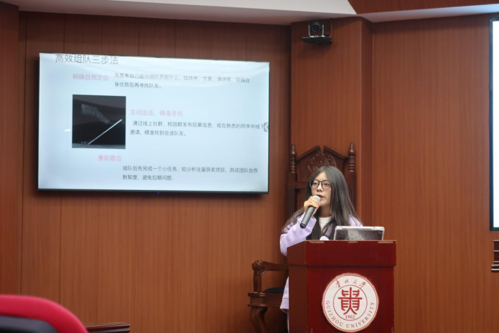 为打破学科与班级壁垒、激发学生创新潜能,满足学生在科创入门、跨专业融合方面的实际需求,2025年11月29日,贵州大学大学生科学技术协会第四期科创百科宣讲——法学院专场“跨界融智,科创同行”活动于贵州大学法学院模拟法庭成功举办。