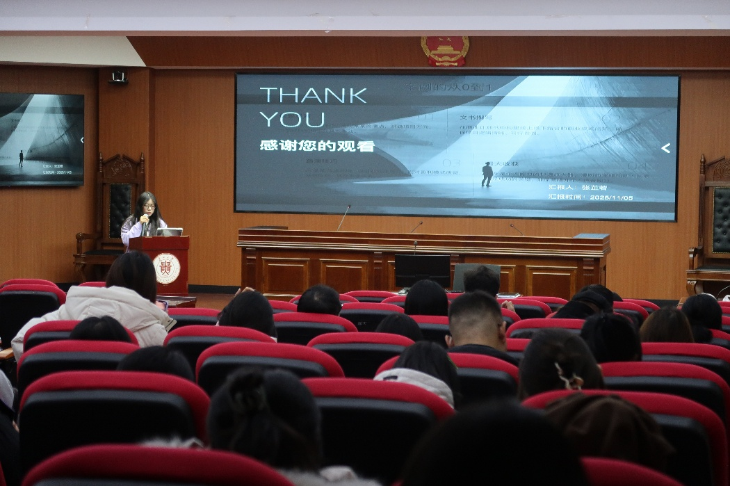本次活动由共青团贵州大学委员会、贵州大学创新创业学院联合主办,贵州大学大学生科学技术协会、法学院大学生科学技术协会以及东校区八栋党总支共同承办。活动特邀贵州大学精细化工研究开发中心2024级硕士研究生张芷若作为主讲嘉宾,法学院百余名学生参与。活动由叶梦怡同学主持。