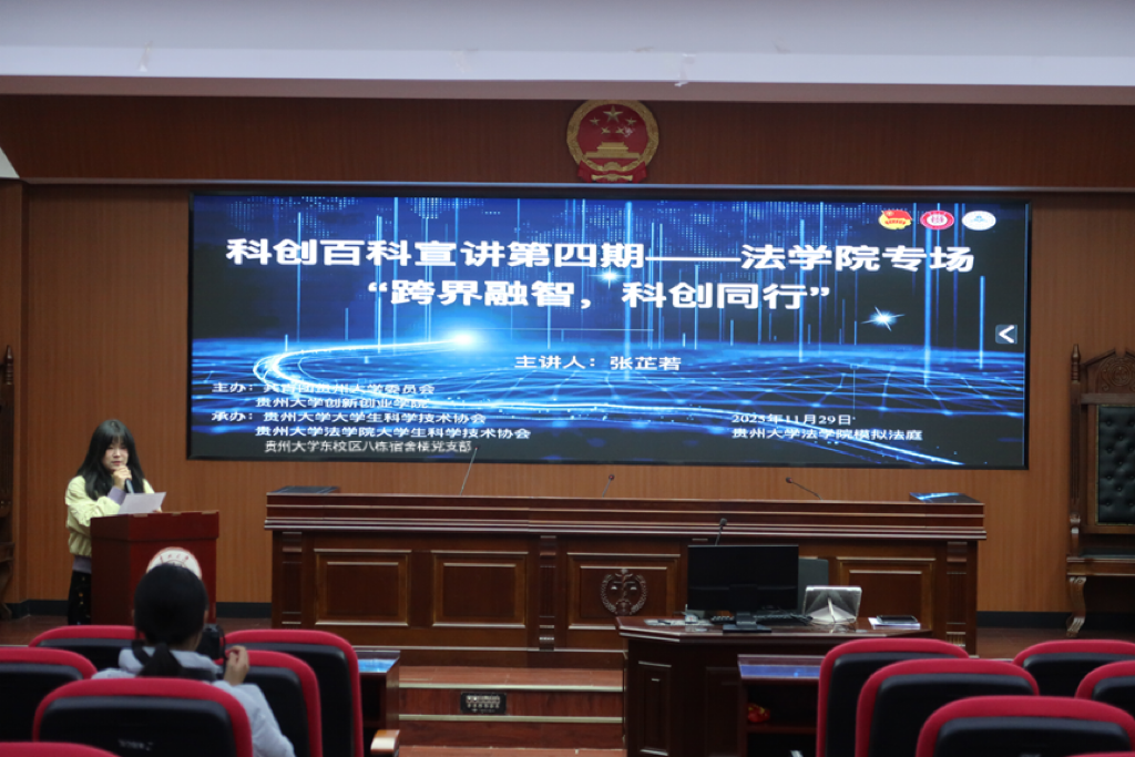 贵州大学大学生科学技术协会第四期科创百科宣讲——法学院专场“跨界融智,科创同行”活动成功举办