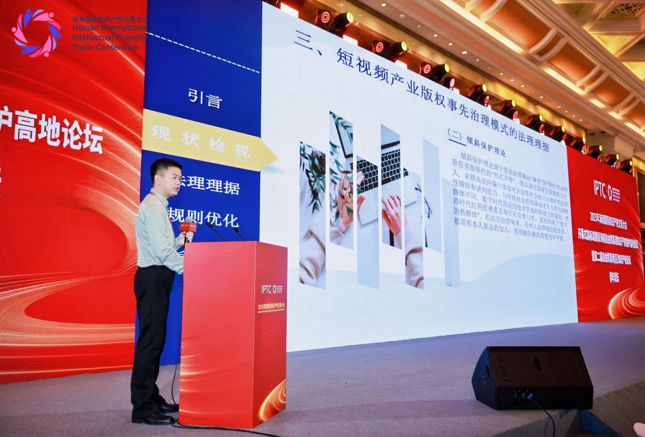 我院2025级民商法学博士研究生曹帅帅受邀参加2025年海南国际知识产权交易大会分论坛“高标准建设海南自由贸易港知识产权保护高地论坛暨第二届自由贸易港(区)知识产权论坛”,在青年论坛第三单元“自贸港(区)知识产权保护的理论创新与制度优化”与来自中国政法大学、中南大学、武汉大学、中南财经政法大学、西南政法大学等高校嘉宾共同交流,并以《短视频产业版权事先治理模式新论:法理理据与规则优化》为主题进行汇报发言。