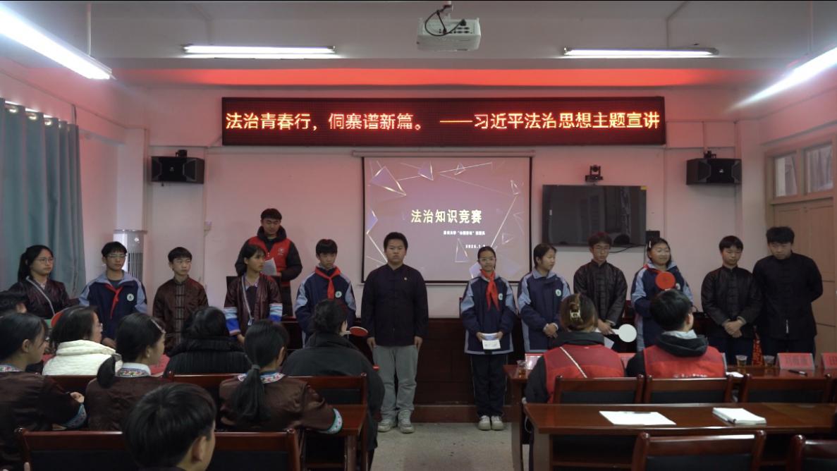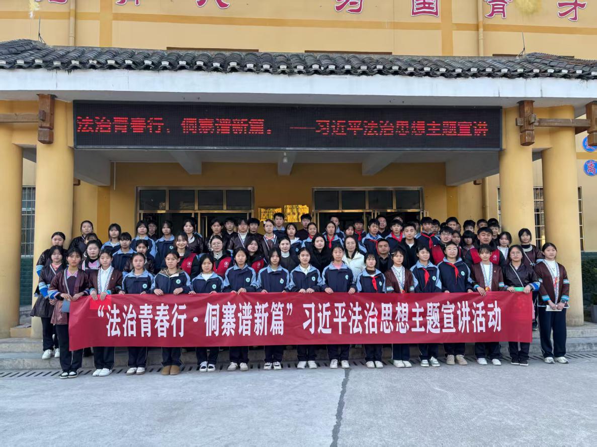 为深入学习贯彻习近平法治思想,积极响应团中央“法治中国青春行”实践号召,推动法学理论与社会实践深度融合。2026年1月8日,贵州大学法学院“心随律动”实践队赴黔东南州肇兴镇初级中学,开展“法治青春行·侗寨谱新篇”主题宣讲活动。共青团黔东南州委副书记邓可、团州委及团县委相关同志出席,与当地100余名青少年学生、返乡创业青年代表共同参与。