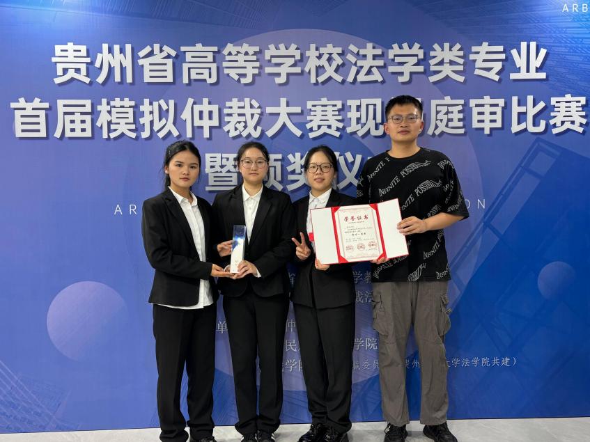 2025年9月27日,由贵州省法学会法学教育研究会、贵州民族大学法学院、贵阳仲裁委员会联合主办的贵州省高等学校法学类专业首届模拟仲裁大赛决赛在贵阳仲裁委员会举行。我院代表队以出色表现荣获团体一等奖(第一名)。